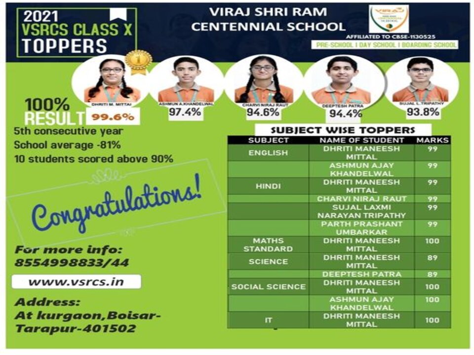 MISSION: Viraj Shri Ram Centennial School will aim to develop 'Creative Minds' which in turn will address student's 'Unique Learning Styles' and will strive to guide its students towards building a courageous and compassionate character that will contribute to communities in positive ways.